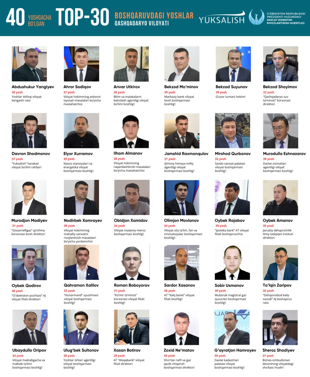 бўлган истиқболли ёш раҳбарлари ТОП-30 рейтинги шакллантирилди.