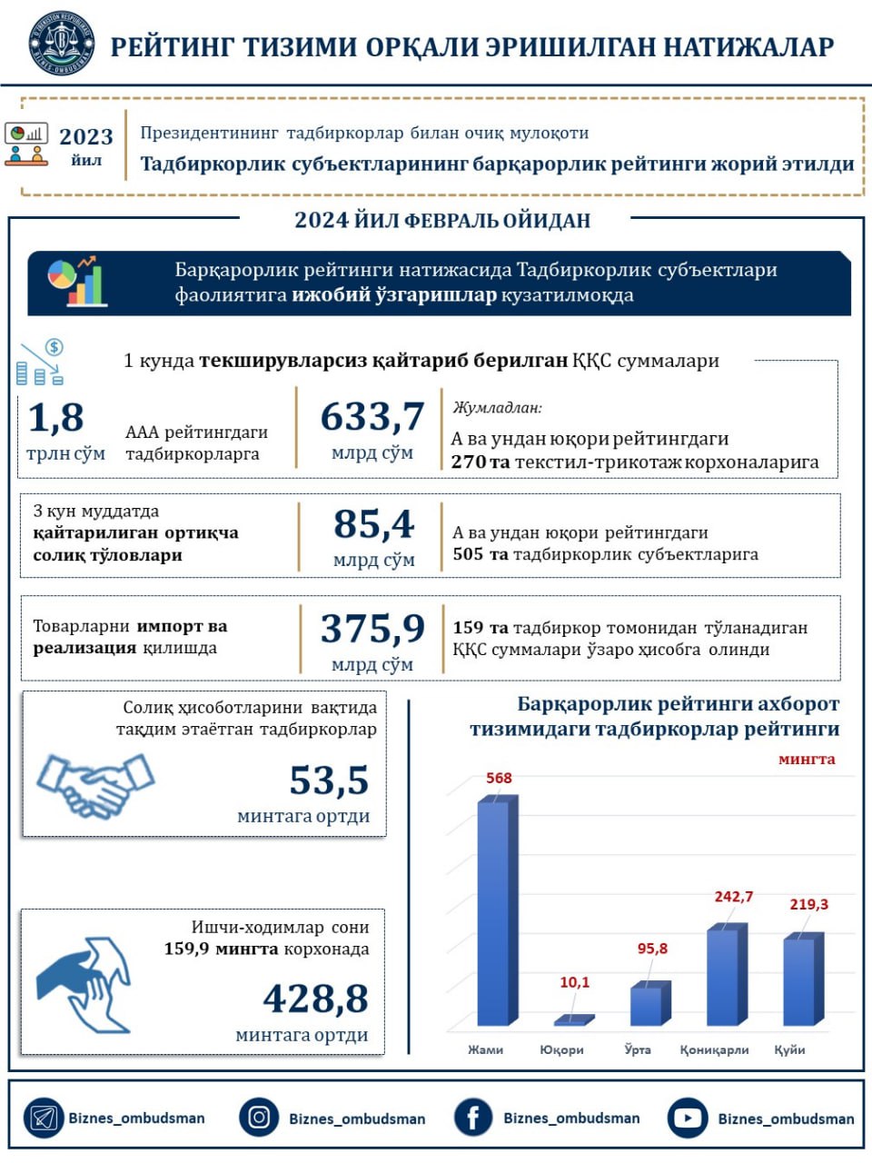 Барқарорлик рейтинги натижасида Тадбиркорлик субъектлари фаолиятига ижобий ўзгаришлар кузатилмоқда.