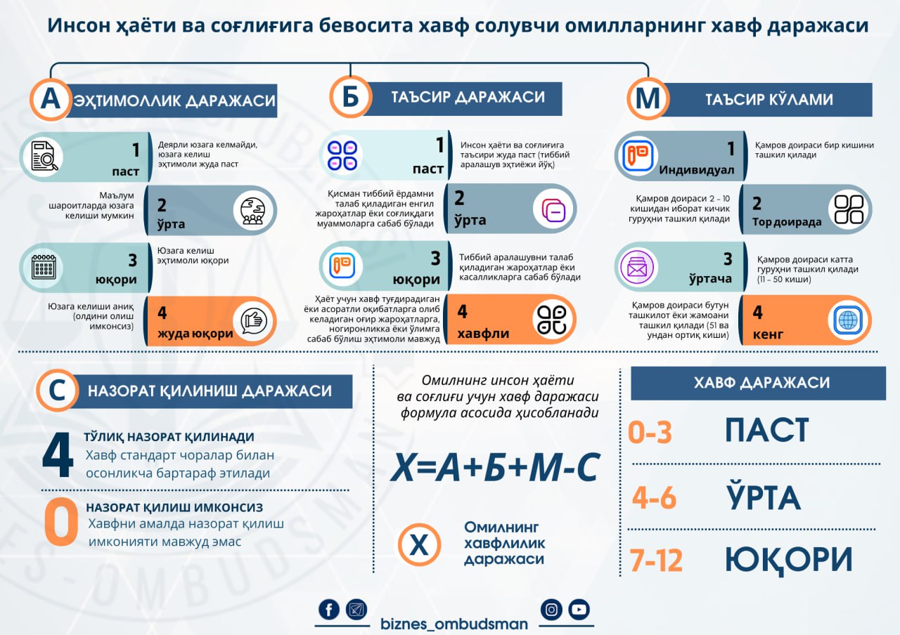 Шу боис назорат қилувчи органлар томонидан инсон ҳаёти ва соғлиғи учун хавф туғдириши мумкин бўлган эҳтимолий омиллар аниқланади.