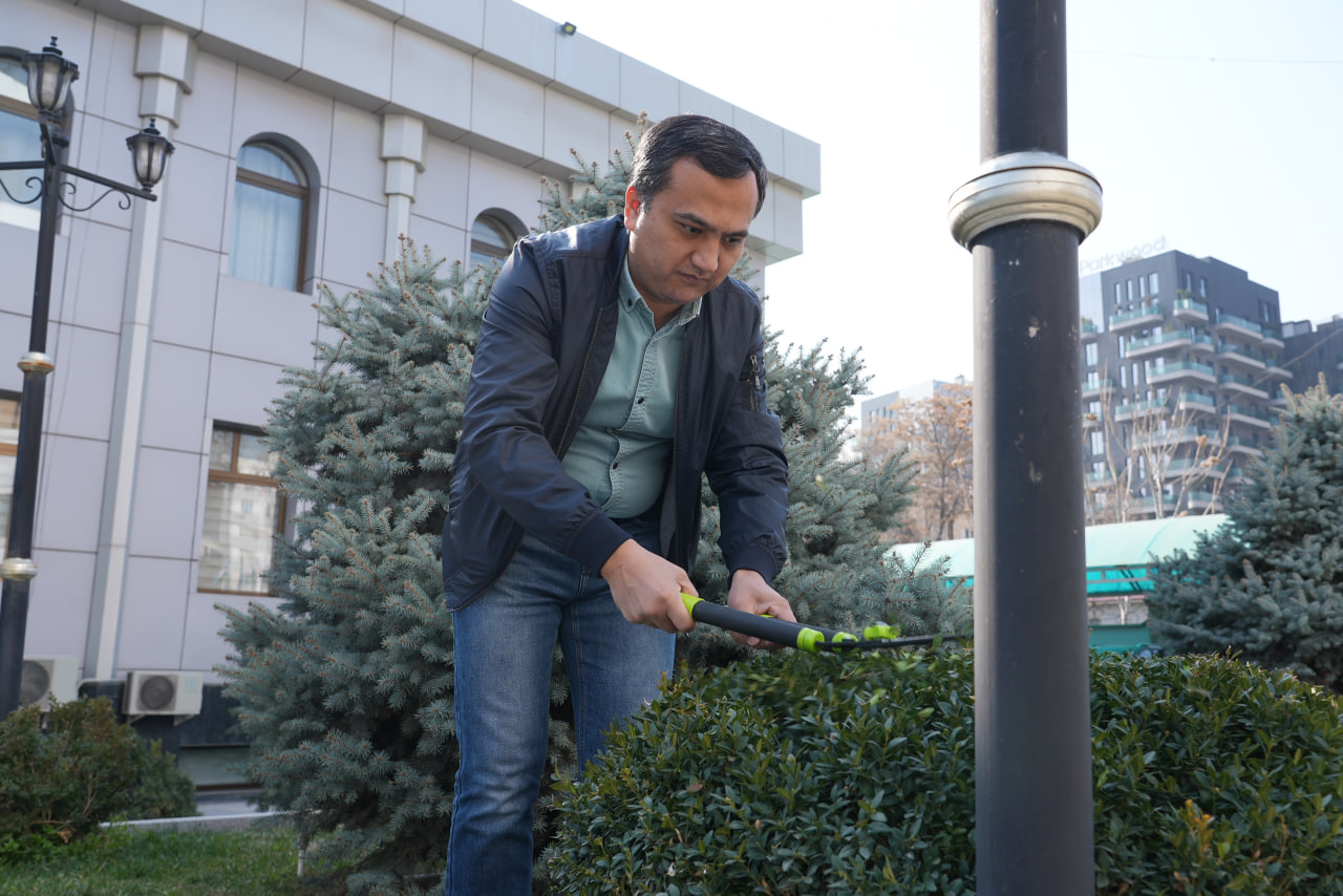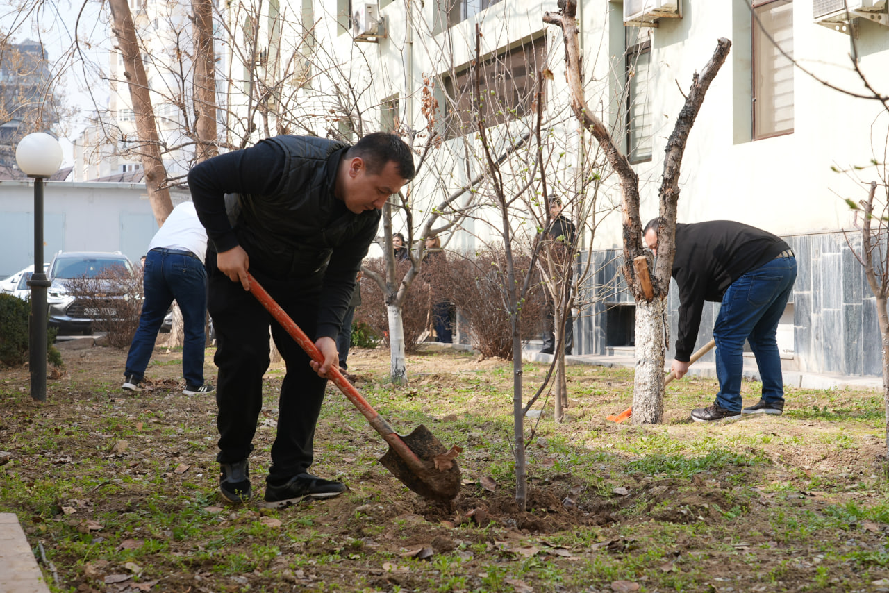 Эрта тонгдан Бизнес-омбудсман девонининг аҳил ходимлари кўтаринки кайфиятда ва ҳамжиҳатликда ободонлаштириш ва кўкаламзорлаштириш ишларида фаол қатнашдилар.