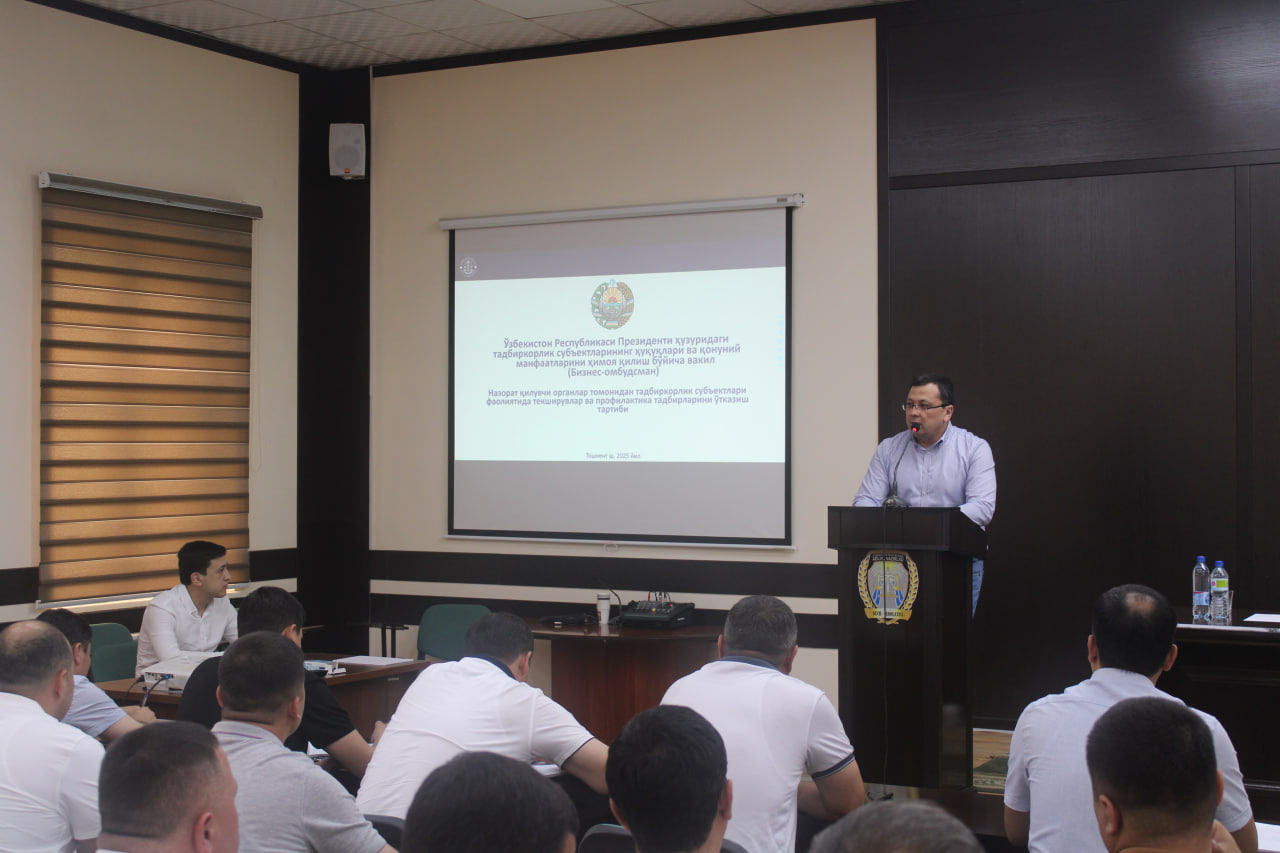 Семинарда 20 га яқин назорат қилувчи органларнинг 140 дан ортиқ ходимлари иштирок этди. Уларга тадбиркорлик субъектларида текширувларни амалга ошириш тартиби, шунингдек, текширувчиларнинг ҳуқуқ ва мажбуриятлари тўғрисида кенгроқ маълумот берилди.