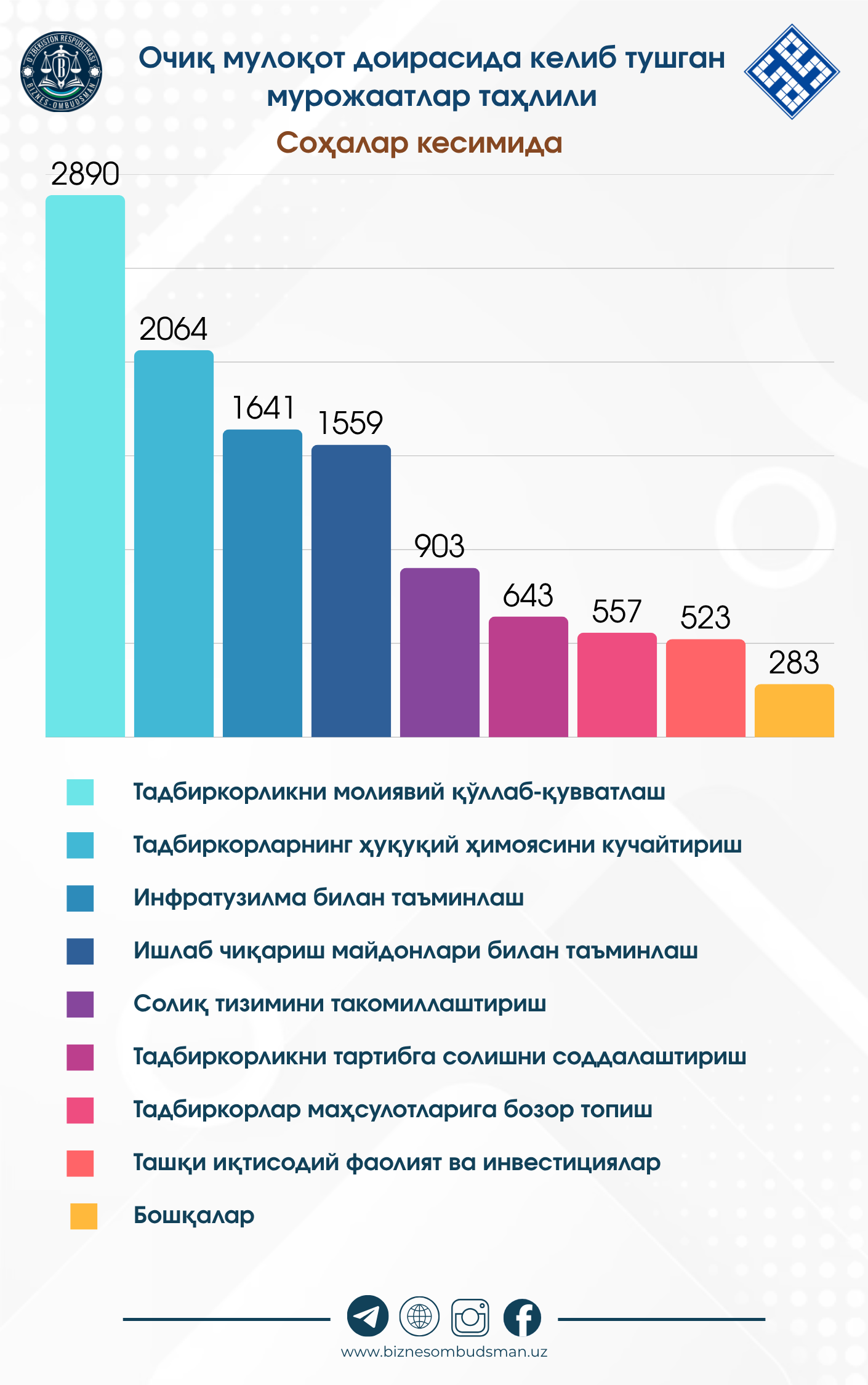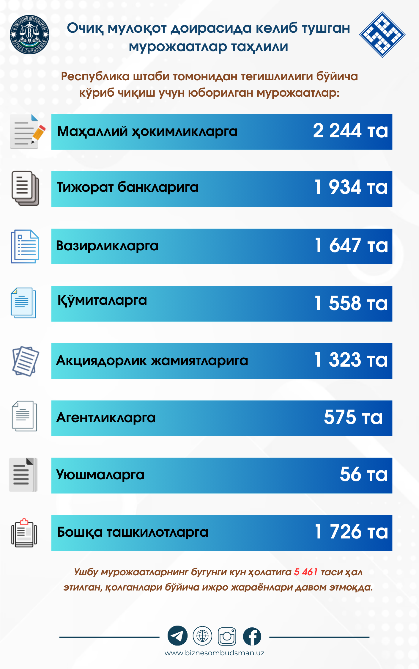 2025 йил 28 июль ҳолатига кўра, очиқ мулоқот доирасида 11063  та мурожаат келиб тушган.