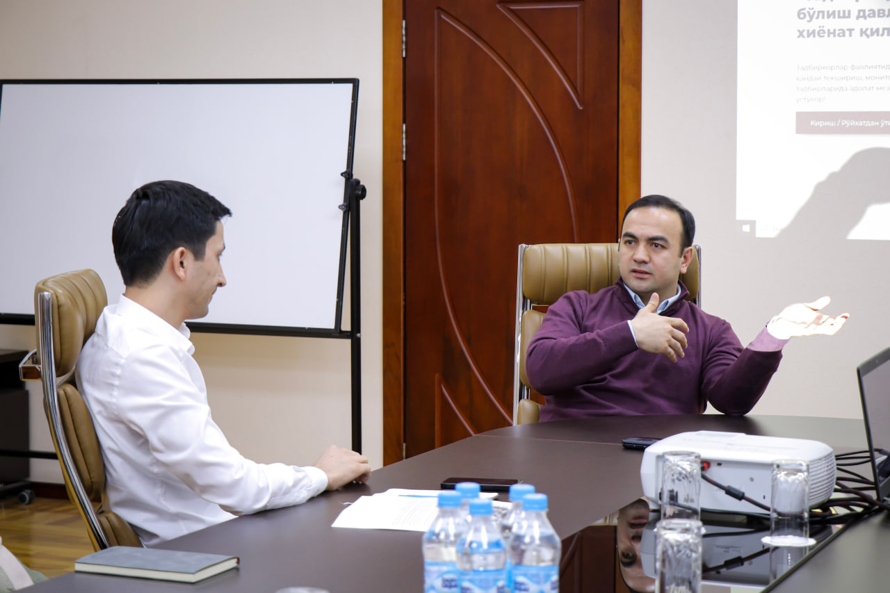 Shu maqsadda, O‘zbekiston Respublikasi Prezidentining tegishli farmonlari ijrosini ta’minlash doirasida nazorat qiluvchi organ xodimlarining huquqiy bilim va mas’uliyatini oshirishga alohida urg‘u berildi. O‘quv mashg‘ulotlari davomida ishtirokchilarga tekshirishlarni «Yagona davlat nazorati» axborot tizimida ro‘yxatdan o‘tkazish, tadbirkorlarning huquq va manfaatlarini himoya qilish hamda nazorat tadbirlarini o‘tkazishning huquqiy asoslari yuzasidan batafsil tushuntirishlar berildi.