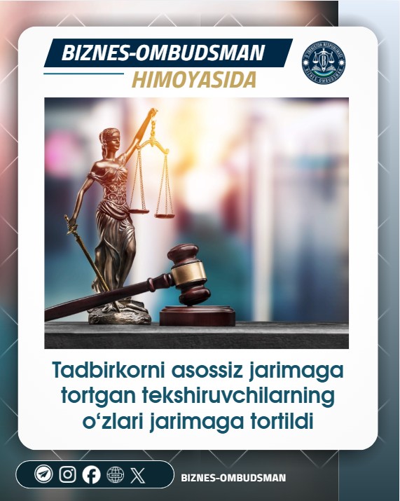 ko‘ra, tadbirkorlik subyektiga nisbatan 10 mln so‘m miqdorida moliyaviy jarima qo‘llagan.
