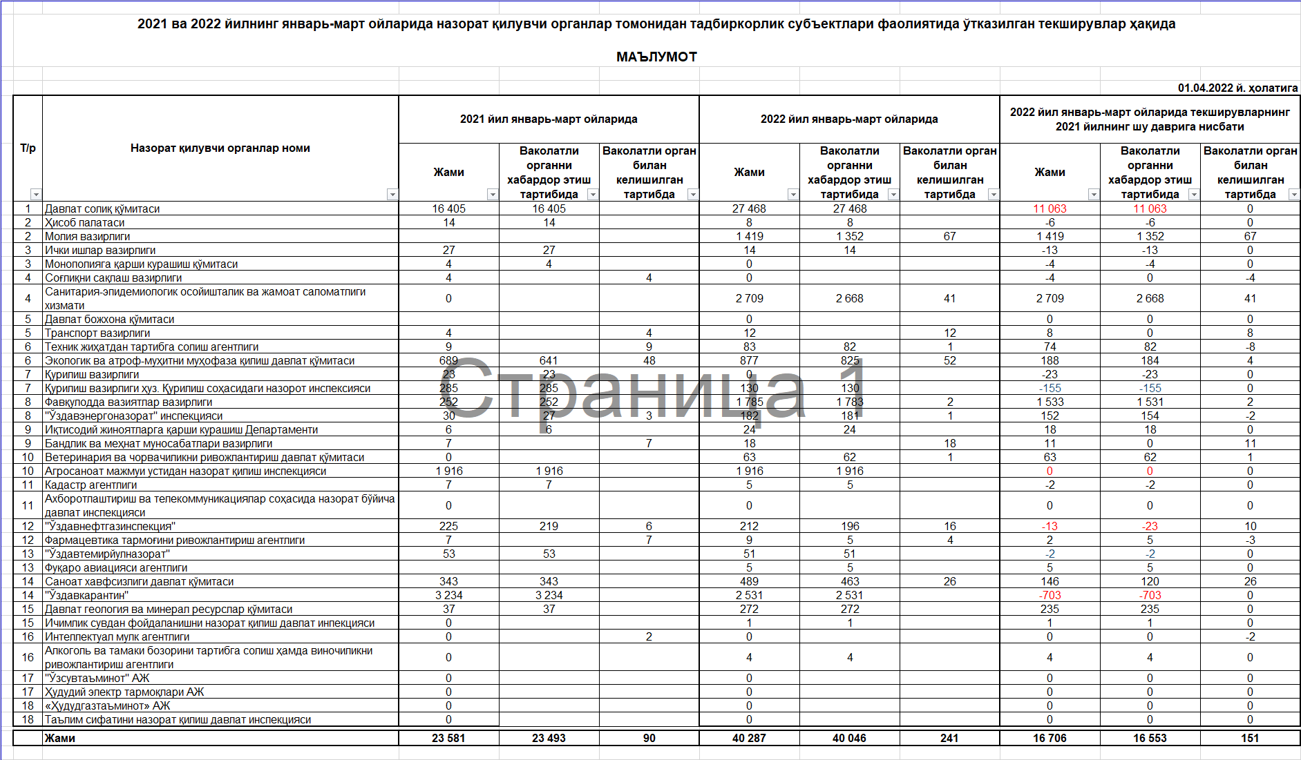 ИНФОРМАЦИЯ о проверках в деятельности субъектов предпринимательства, проведённых контролирующими органами в январе-декабре 2020-2021 гг.