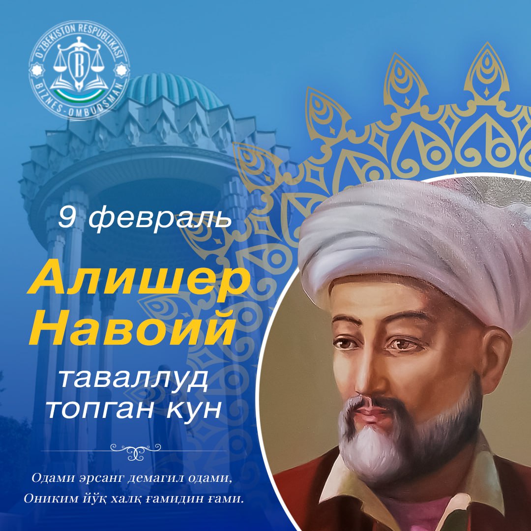 Бугун, 9 февраль – буюк ўзбек шоири, мутафаккир, давлат арбоби Низомиддин Мир Алишер Навоий таваллуд топган кун.