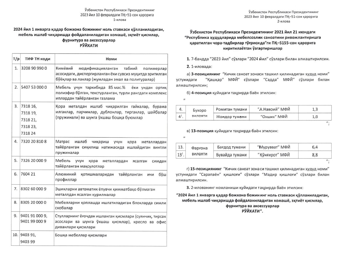 Приложением 2 к Постановлению Президента Республики Узбекистан №ПП-5155 от 21
