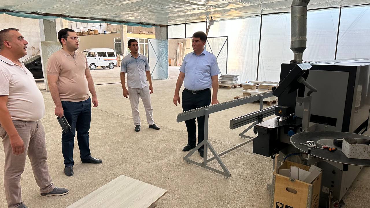 Ўзбекистон Республикаси Президенти ҳузуридаги Тадбиркорлик субъектларининг ҳуқуқлари ва қонуний манфаатларини ҳимоя қилиш бўйича вакил девони ходимлари Жиззах вилояти Шароф Рашидов туманидаги “Хилол улгуржи савдо” хусусий кофрхонаси томонидан ойна маҳсулотларига безак бериш фаолияти билан танишдилар.