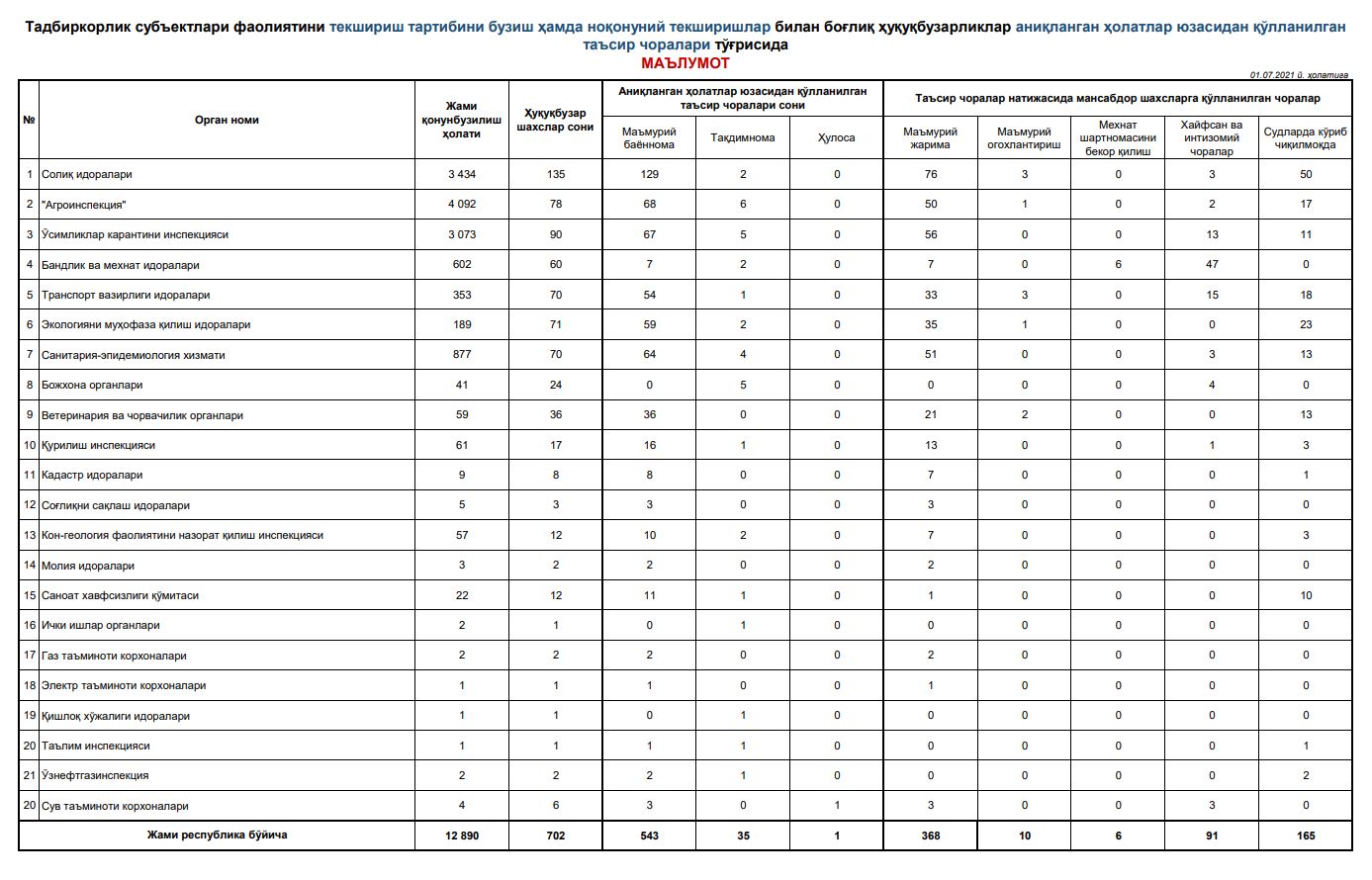 Бизнес-омбудсманнинг текширувлар қонунийлигини назорат қилиш бўйича фаолияти